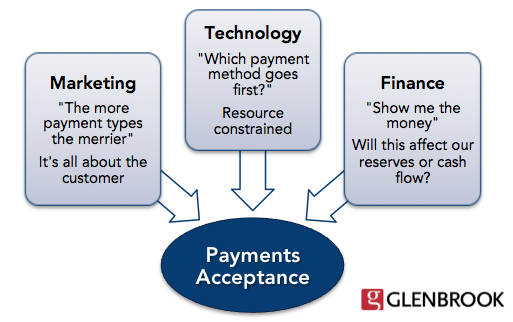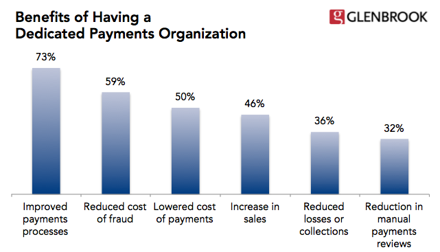 Glenbrook has observed that as businesses develop increasingly sophisticated payment capabilities, they often need to revisit their organizational structure. Due to the importance of payments, fraud and exception processing to the bottom-line, many eCommerce merchants are establishing payment-specific centers of excellence within their finance, treasury or operations groups. The need for a dedicated payments function is driven by the complexity of the outside environment as well as conflicting priorities internally as sales teams seek to expand revenue and risk management works to minimize fraud.